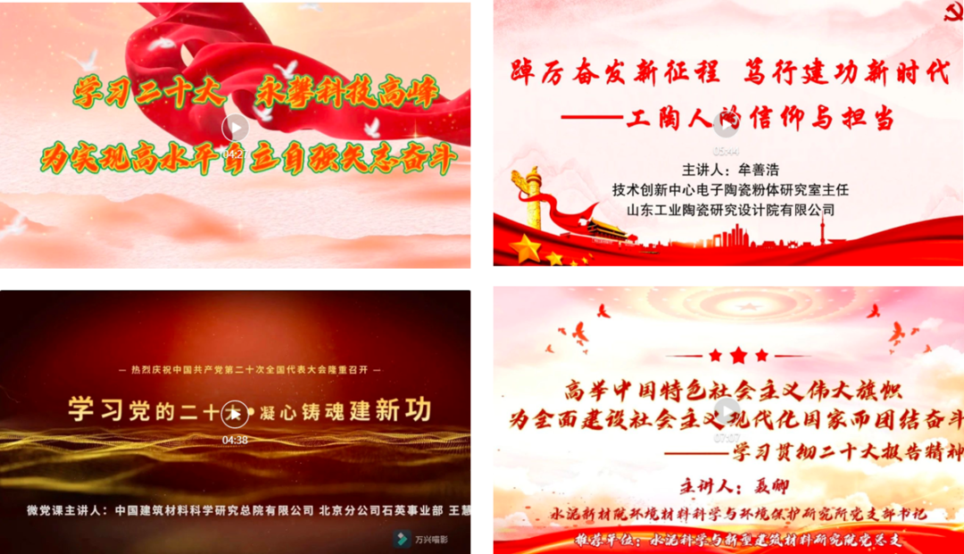 中国建材总院组织各级党组织书记、党员干部开展党课教育,引导广大干部职工进一步强化理论武装、筑牢思想根基,进一步领会精神实质、把握核心要义。瑞泰科技、国检集团、中材高新、西安墙材院、咸阳陶瓷院、总院北分、中岩科技、水泥新材院主讲人分别讲授了党课,紧紧围绕贯彻落实党的二十大精神,全面回顾了历史进程和新时代的伟大变革,解析未来一段时期党和国家事业发展的目标任务和大政方针,并结合企业发展与自身工作,深入解读党建工作为企业持续健康发展提供坚强政治保证和组织保证。一堂堂生动的党课带领大家锻造“初心”,增强作为新时代青年人的历史使命感和责任感。