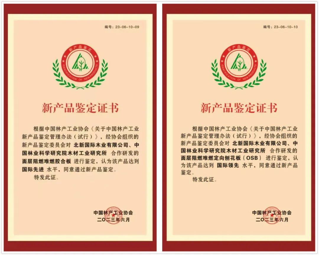 近日,北新集团所属北新木业与中国林业科学研究院木材工业研究所联合研制的阻燃难燃产品通过中国林产工业协会组织的新产品鉴定。鉴定委员会站在行业高度进行充分质询讨论与审议复核,最终认定北新木业“面层阻燃难燃定向刨花板(OSB)”具有较强的创新性,达到“国际领先”水平;“面层阻燃难燃胶合板”具有创新性,达到“国际先进”水平。