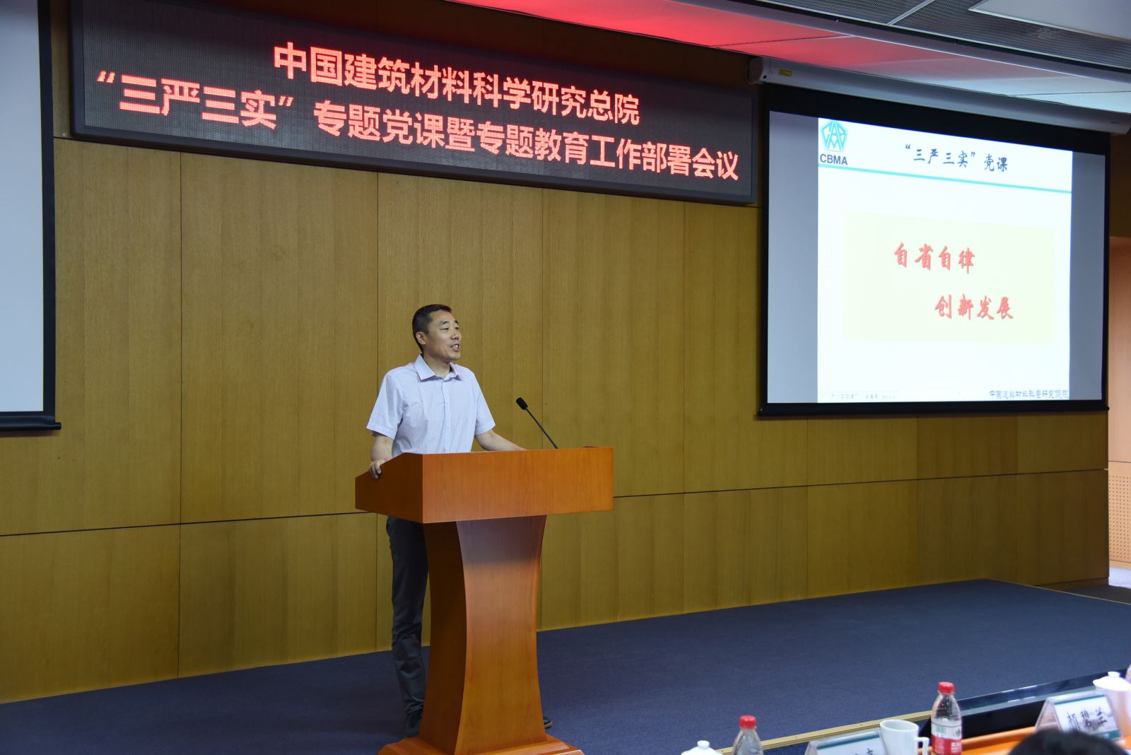 来源:中国建筑材料科学研究总院 发布时间:2015-06-116月10日,按照集团公司党委的要求,总院党委书记王益民讲了题为《自省自律,创新发展》的党课,以高质量的党课全面启动总院“三严三实”专题教育工作。集团公司党委副书记、副董事长、总院院长姚燕做了重要讲话,总院党委副书记马振珠传达了中央“三严三实”专题教育工作座谈会精神,并主持了会议。集团公司纪检监察室主任宋江涛到会指导。总院全体院领导、党委委员、纪委委员、全体中层干部、支部书记共计近100人参加了会议。