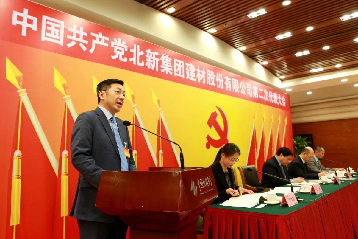 北新建材党委书记、董事长王兵同志作了题为《围绕企业中心工作 发挥政治核心作用 为实现公司持续稳健优化发展而努力奋斗》的工作报告。报告指出,自2007年第一次党代会召开以来,公司各级党组织紧紧围绕企业发展大局,正确引领、凝心聚力、发挥优势,为公司改革发展稳定提供了坚强有力的思想保证、组织保障和动力支持。北新建材生产经营工作成效显著,实现了持续快速增长。截至2014年底,公司的营业收入由2007年的31.43亿元增长到82.95亿元,利润总额由3.08亿元增长到16.63亿元,总资产由53.37亿元增长到133.73亿元,分别是2007年的2.64 倍、5.4倍、2.51倍。石膏板业务从中国第三跃居全球第一,赢得全球石膏协会“全球石膏行业突出贡献奖”并蝉联“全球石膏行业年度公司”称号,打造了北新建材发展的“黄金十年”。报告全面分析了公司面临的形势和任务,并提出了新一届党委主要战略目标和任务:坚持以党的十八大、十八届三中、四中、五中全会和习近平总书记系列重要讲话精神为指导,坚持党的领导,坚持从严治党,在上级党委的领导下,主动适应经济发展“新常态”,以全面深化改革为主线,以推进建筑、城市、人居的绿色化为使命,通过创新经营和资本运营,进一步增强经营能力和资本实力,发展成为拥有自主品牌、自主知识产权、核心业务排名世界第一、具有世界水平的跨国公司。