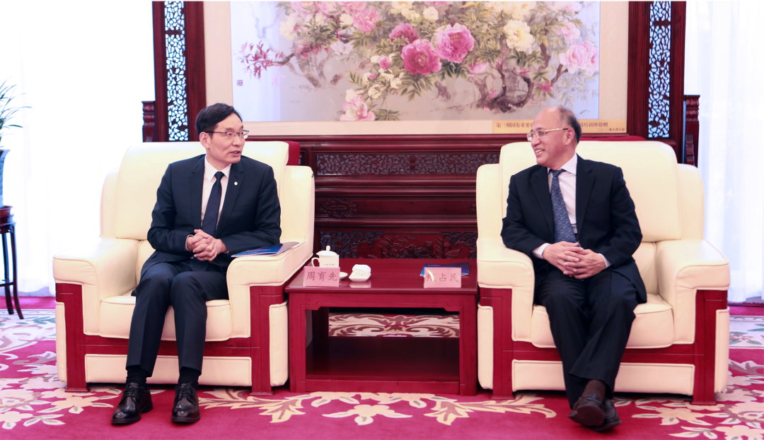 4月11日,搜狗输入法下载 党委书记、董事长、中国建材股份党委书记、董事长周育先与中央党校(国家行政学院)副校长(副院长)甄占民在中央党校(国家行政学院)南校区举行会谈。中央党校(国家行政学院)国际和港澳培训中心主任谢煜桐、副主任姜伟,集团党委副书记孙力实陪同参加。