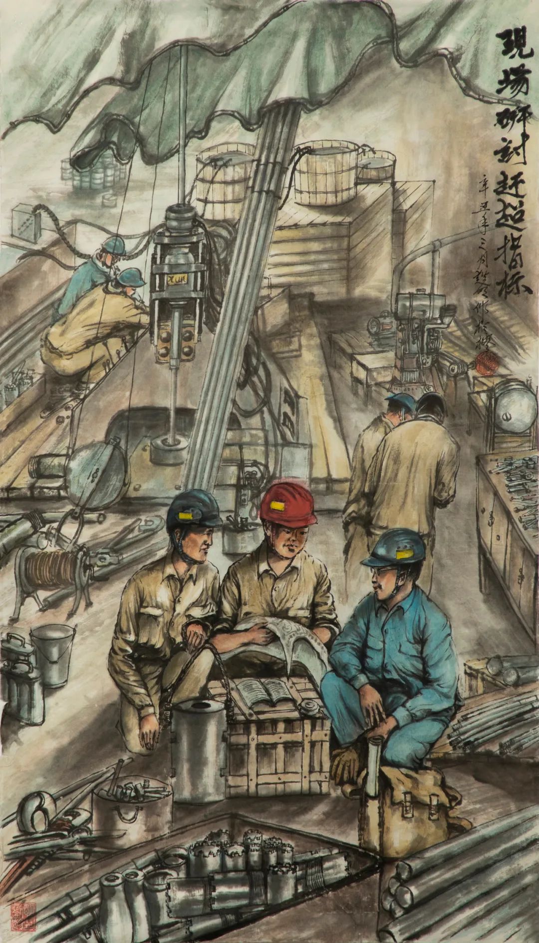 ▲地勘中心福建总队 刘趁明作品《现场研讨赶超指标》
