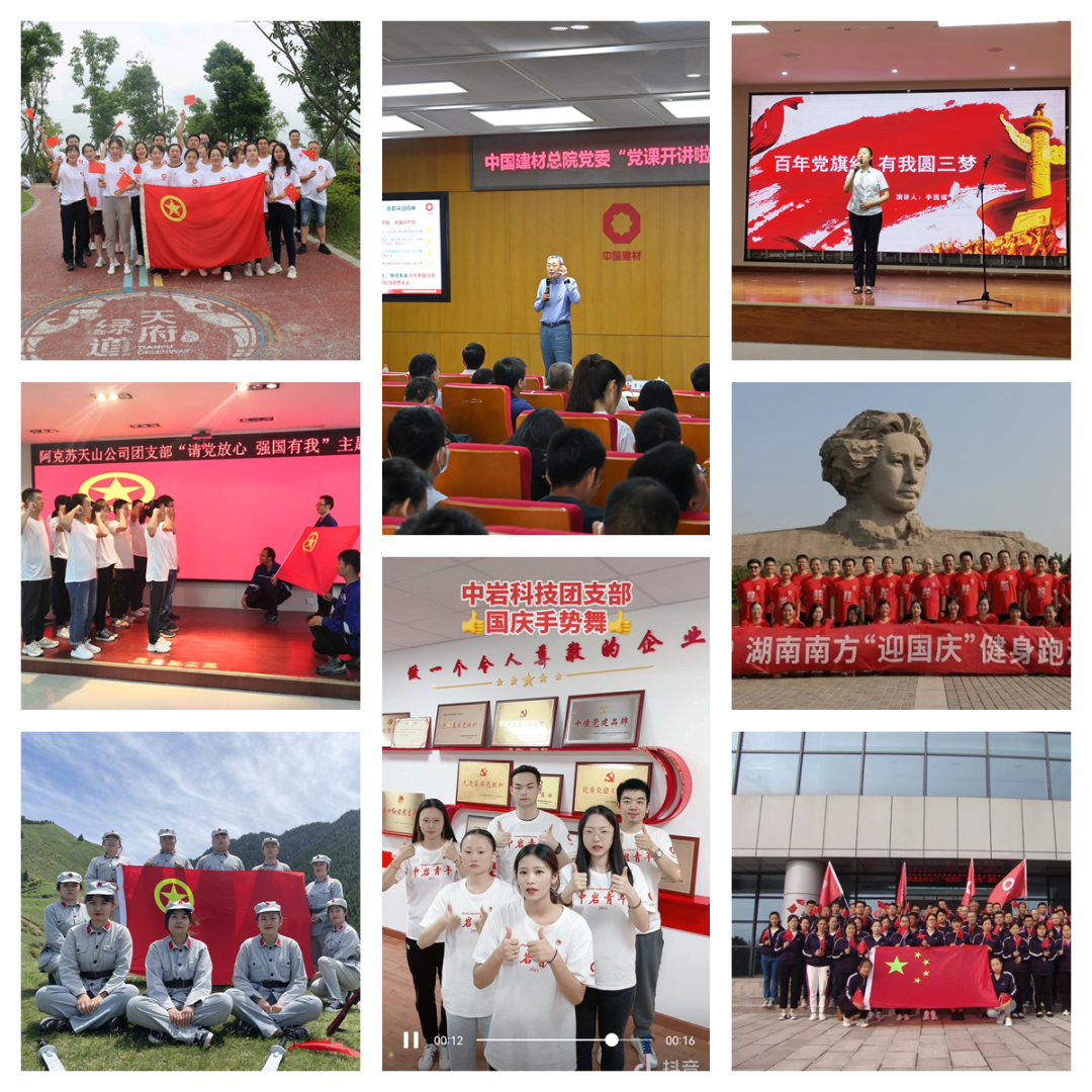 中国建材总院开展“党课开讲啦”活动,团员青年聆听党委书记、董事长党课,深切感悟总书记讲话内涵要义;中岩科技团支部录制手势舞抖音短视频,祝福祖国盛世华诞。