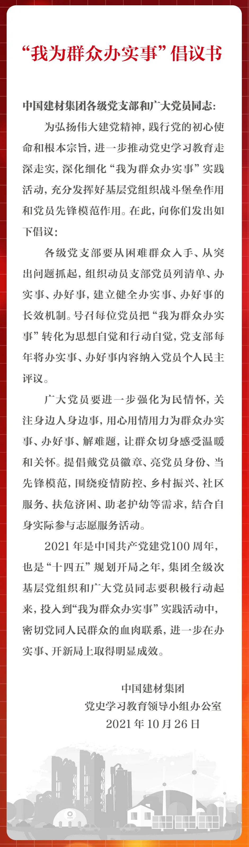 @全体中国建材党员,这份“我为群众办实事”倡议书请查收!