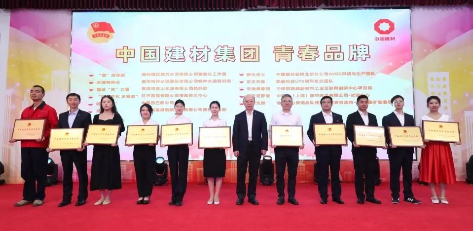 会上,中材建设执行董事童来苟致欢迎辞。大会发布了湖州槐坎南方“智”创未来、巨石集团信息技术中心“纤变万化 正青春”、哈玻院第四事业部“龙江利刃”、中建材航空试制中心“蓝天逐梦者”等“十一个“青春品牌”,发布了宁夏建材林凯、中材建设汪程、中国建材总院张琎珺等十名“青年楷模”,常张利为受到表彰的青年集体和个人颁奖。