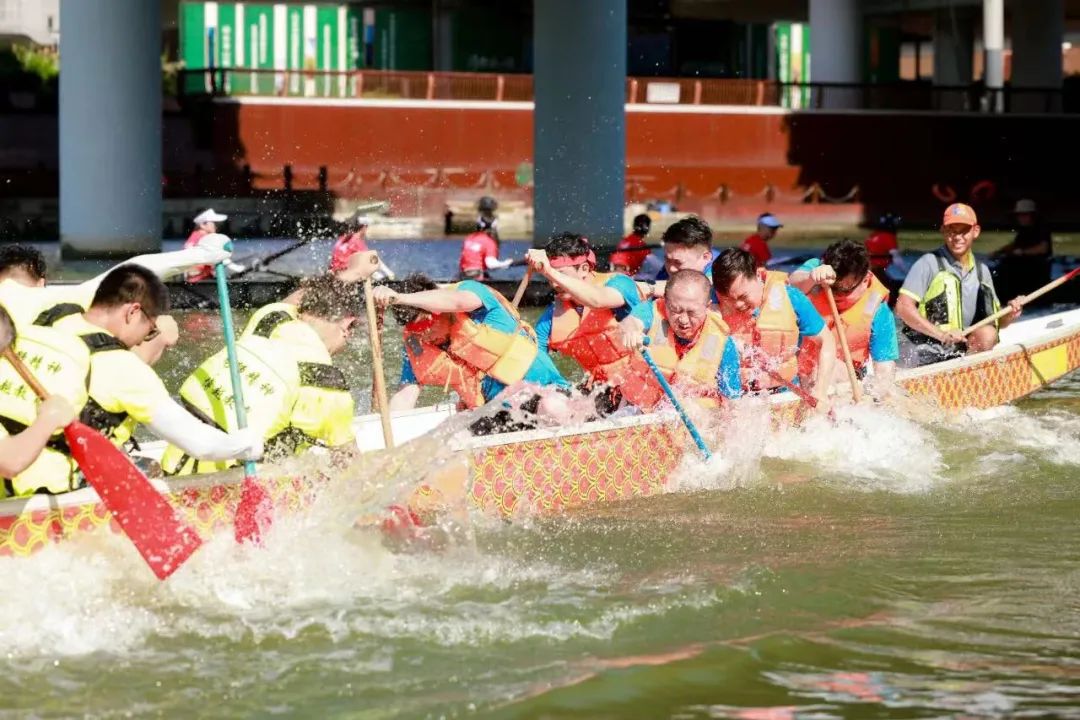 伴随开赛的锣鼓声,一条条龙舟如离弦之箭疾驰而出,霎那间棹桨翻飞、白浪四溅,选手们奋楫逐浪,朝着终点全速前进,大沙河两岸加油声此起彼伏。经过激烈的角逐,最终龙翔虎跃队拔得头筹,大沙河两岸一片欢腾!
