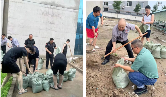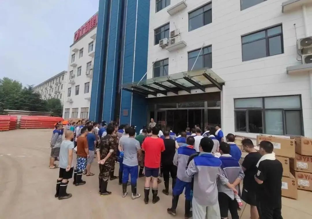 北新建材涿州分公司:提前准备防范,用沙袋、脱硫石膏等封堵车间、园区大门,转移高货值物资,加紧进行食物制作储备,实时监测水情,组织员工对灌水点进行持续封堵,及时果断切断园区动力电源,安排员工分批疏散撤离,337名员工无一失联、无一伤亡。