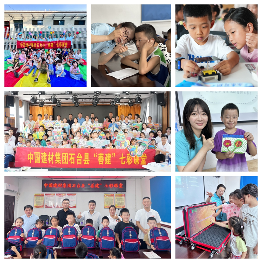 多年来,集团持续加大帮扶力度,接续推进乡村振兴,如今的定点帮扶区县旧貌换新颜。教育扶贫是切断贫困代际传递最有效的途径,此次“善建”七彩课堂在5个定点帮扶区县设置了15个教学点,覆盖近800名儿童。大山里的孩子们,渴求知识、渴望外面的世界,“善建”七彩课堂精心设置文化、手工、舞蹈、美术、思维、科学、体育等,以及体现建材特色的各种企业课,带领孩子们探索发电玻璃的奥秘,一起动手制作精美的石膏模型……通过五天的教学与陪伴,孩子们收获了知识、开拓了视野,更加自信自立、坚定勇敢。