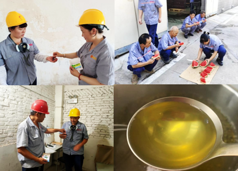 为切实做好防暑降温工作,河南瑞泰工会“娘家人”为一线职工送去西瓜、人丹、藿香正气水等防暑用品,后勤小厨房每天为员工熬制绿豆汤、槐豆水,只为让奋战一线的职工体验到夏日的一抹清凉。