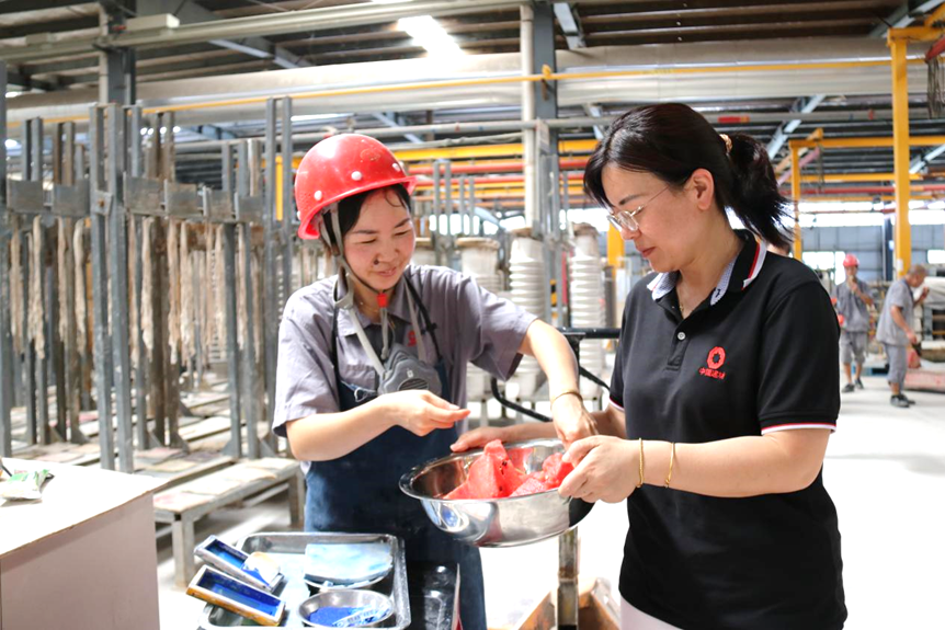 近日气温持续升高,骄阳如火,酷暑考验着每位坚守在生产一线的职工。为了认真做好防暑降温工作,切实维护广大职工的健康权益,中材电瓷工会组织开展“工会送清凉活动”,向广大职工送去了关心关怀。