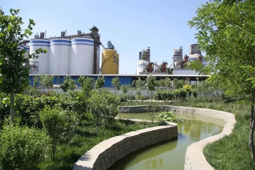 绿树蓝天与厂区的交相辉映