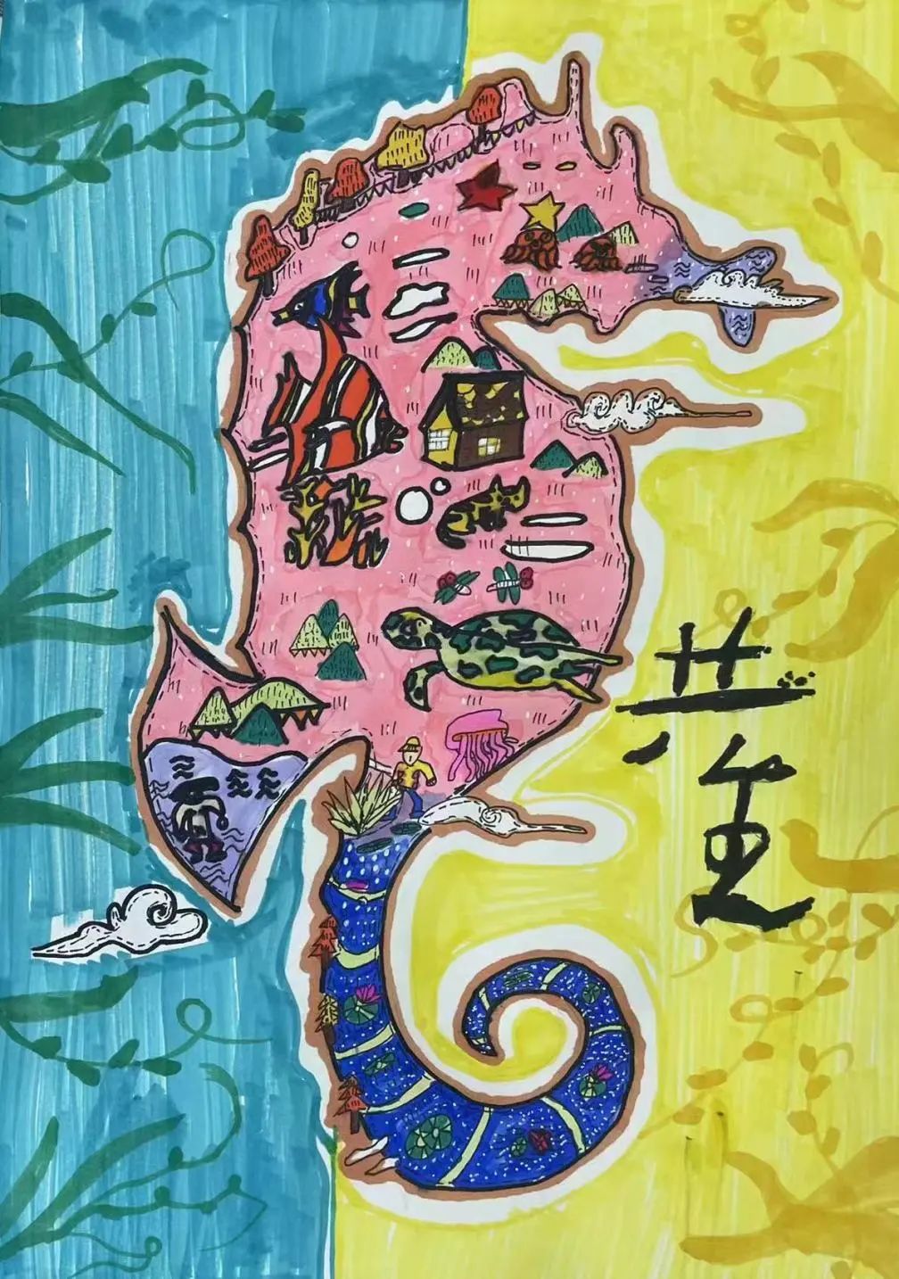 作品名称:《共建绿色和谐海洋家园》