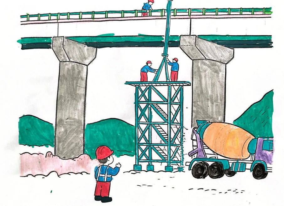 作品简介:在我眼里妈妈工作的地方就是神奇魔法部落,他们生产的水泥变成了“网红桥”、变成了高楼,妈妈说最厉害的是“建材魔法”,Ta有很多本领,可以创造未来世界。