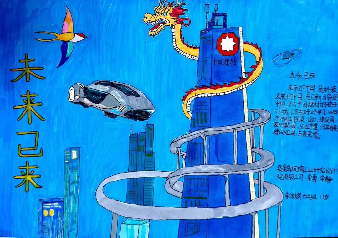 作品简介:未来的中国,是科技发展的中国,是日新月异的中国。作为中国建材的孩子们,我们现在要好好学习,争取成为设计、建设国家的栋梁。生在华夏,何其有幸,建设祖国,与有荣焉。