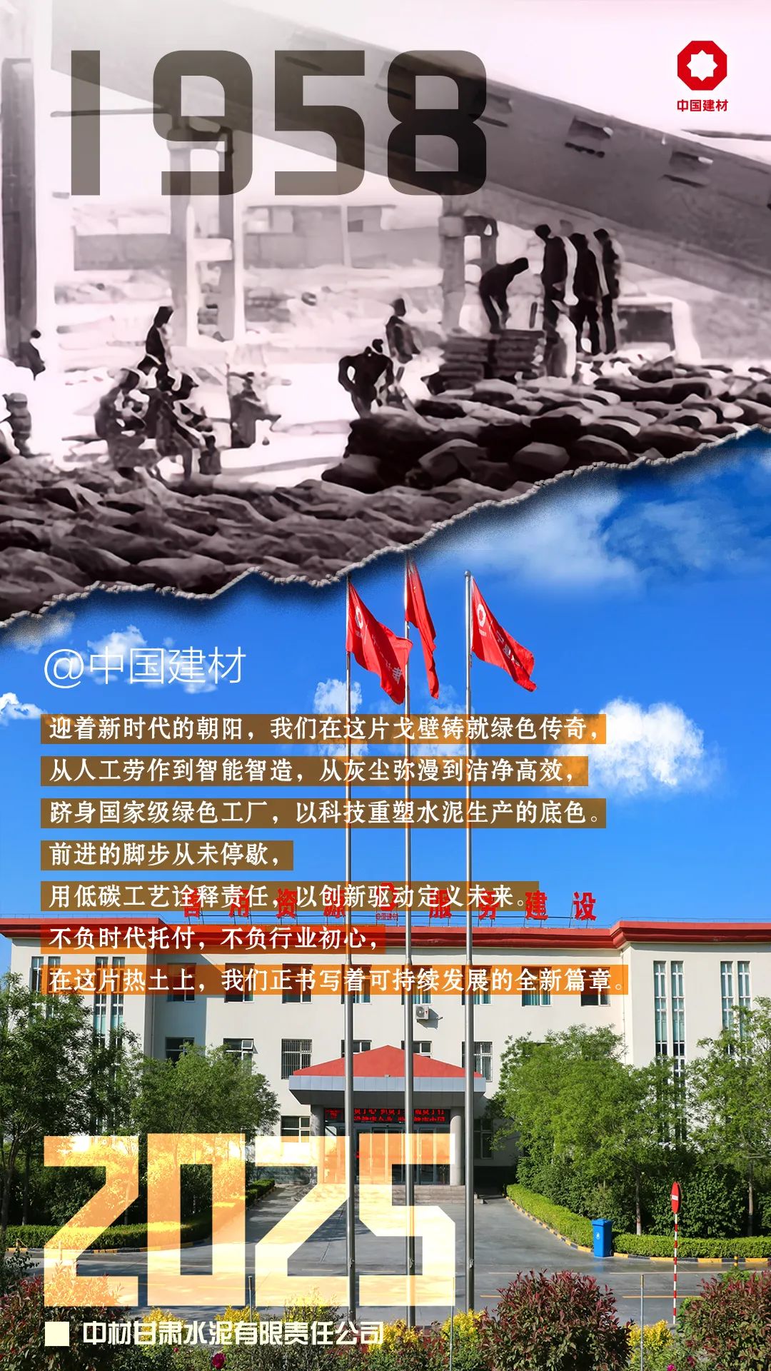 前辈,您看!昔日,你们在烽烟中用密火浇筑民族工业的脊梁;今日,我们在山河间以创新点燃高质量发展的星火。从立窑的每一锹煤到特种水泥的每一组数据,变的是技术,不变的是“把水泥变成国家筋骨”的初心。这盛世,如您所愿,更胜您所期!