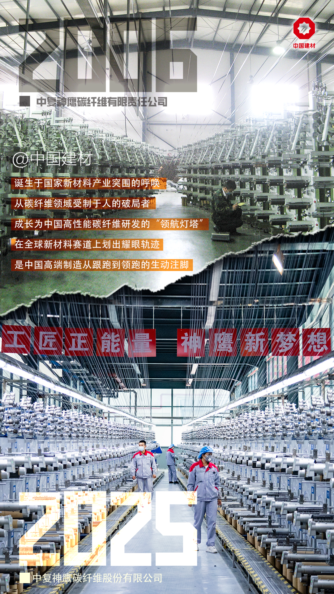 前辈们请看,当年你们点亮的微光,现已汇聚成照亮行业的星河。中复神鹰碳纤维既助力中国航空航天突破天际,又在民生领域绽放异彩,完成从跟跑到全球领先的蝶变。我们定会接过接力棒,将“啃硬骨头”精神薪火相传,以持续创新为笔,向着“全球一流碳纤维企业”目标奋进,让中国碳纤维在世界舞台绽放更璀璨的光芒!
