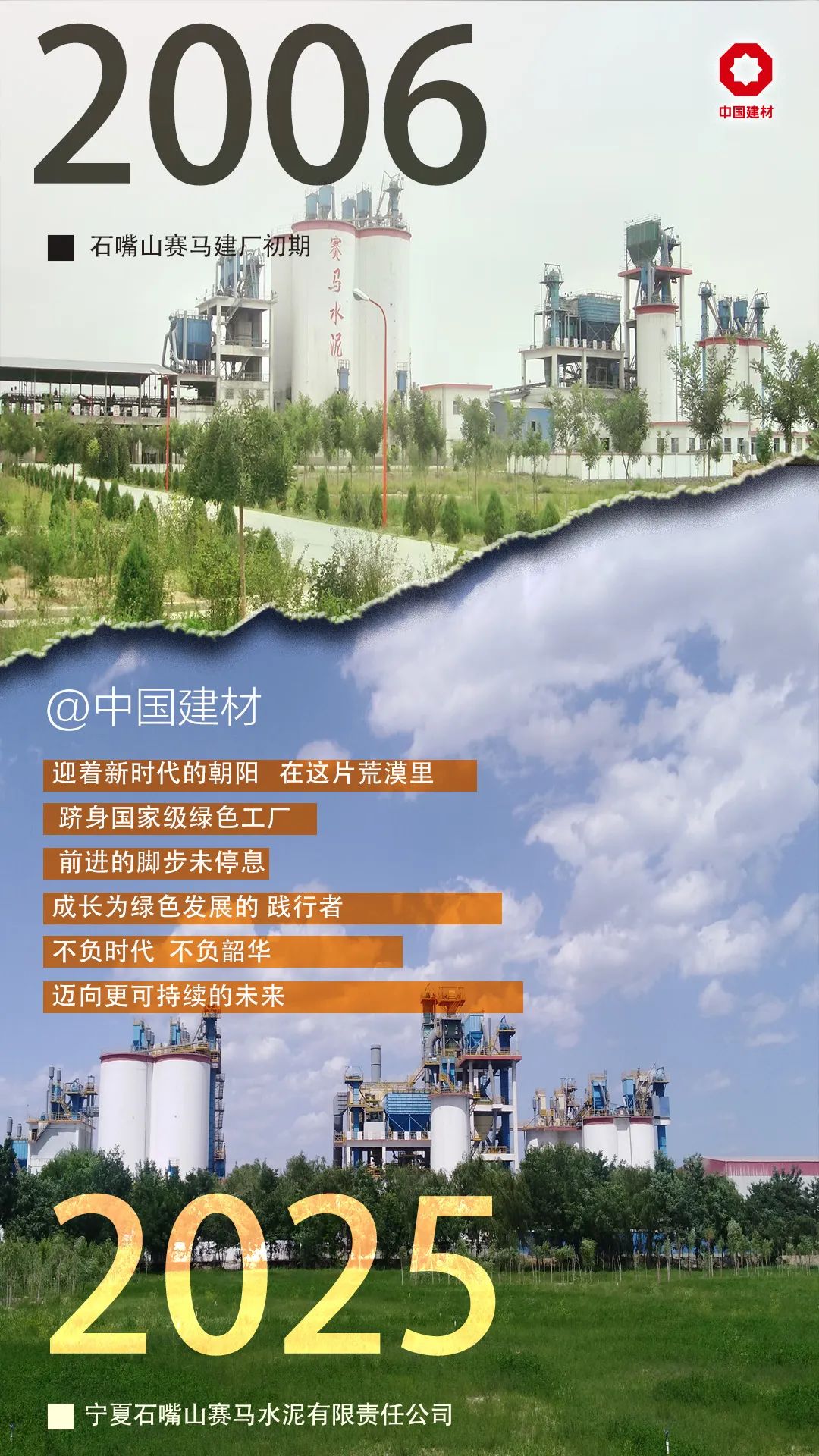前辈,您曾用双手在漫天粉尘中浇筑时代的基石,而今,我们以科技与匠心重塑水泥制造的未来。您看,自动化设备精准调控每一道工序,先进技术让工业与自然和谐共生;您听,智能系统的提示音取代了往昔机器的轰鸣,绿色工厂的荣誉见证着行业的蜕变。我们传承的不仅是您留下的技艺,更是那份让中国制造走向卓越的信念。这,就是我们对历史最好的回答!