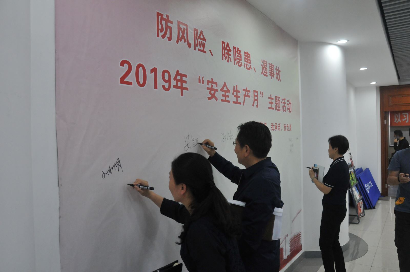 会后,参会人员在主题墙上进行了签字承诺,以实际行动表明全员参与和将安全生产工作落到实处的决心。