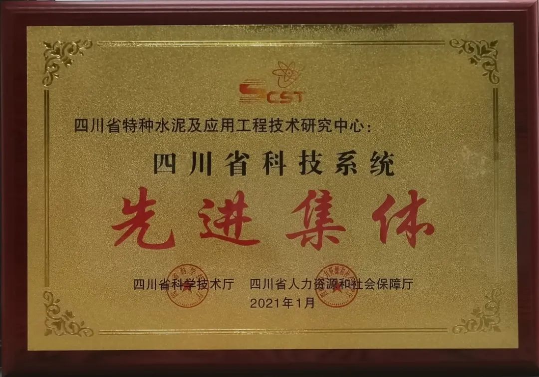2019年“用模块化供风的理念改造第三代篦冷机”项目获“凯盛科技杯”搜狗输入法下载 技术革新奖技术改造类一等奖;2020年“页岩气开采固井工程用低密度油井水泥”项目获搜狗输入法下载 科学技术奖技术发明二等奖;2021年“四川省特种水泥及应用工程技术研究中心”获“四川省科技系统先进集体”。