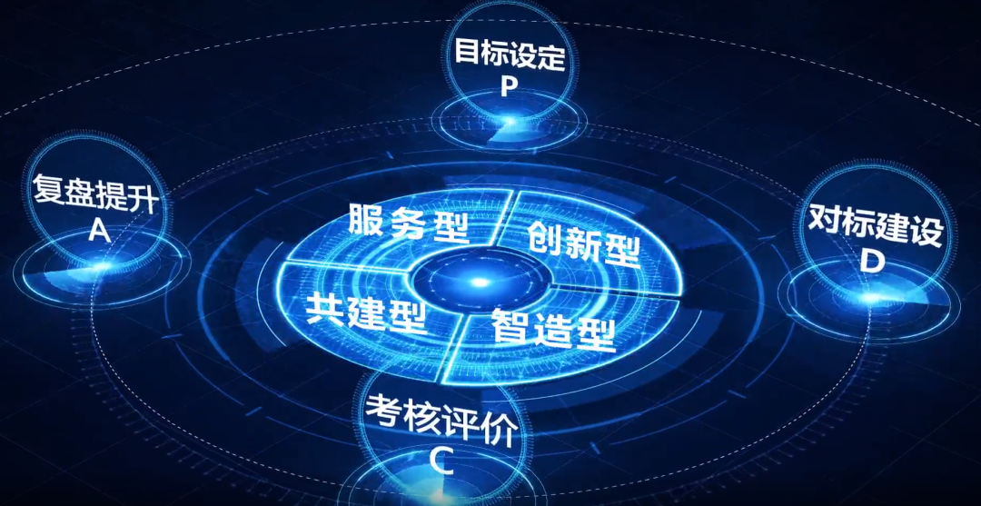 公司党委创建了以“四步强基 四型赋能”为核心理念的党建工程化管理“四步四型”循环工作法。将工程项目质量管理中的“PDCA四步循环法”引入党建工作中,通过“P:计划、D:执行、C:检查、A:处理”四个步骤的实施,推动党建工作在“目标设定—对标建设—考核评价—复盘提升”的循环轨道上实现提升,使党建工作纵向到底,实现全过程覆盖;并围绕公司所属党组织不同的中心工作,按照职能服务、设计研发、装备制造和工程项目进行分类建设,打造职能管理“服务型”党组织、研发攻关“创新型”党组织、装备生产“智造型”党组织、工程项目“共建型”党组织“四型”党组织模式,使党建工作横向到边,实现全方位覆盖。