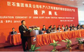 2014年5月18日,中国玻纤巨石埃及玻璃纤维股份有限公司年产八万吨玻璃纤维池窑拉丝生产线全线投产。这是中国在海外建设的首条大型玻纤生产线。